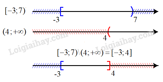 c) Biểu diễn hai tập \(( – 3;7]\) và \((4; + \infty )\) trên trục số, ta được: