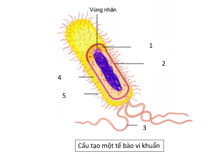 Dựa vào kiến thức đã học ở bài Tế bào nhân sơ, em có thể dễ dàng điền tên cấu trúc phù hợp với từng số từ 1 đến 5 và nên khái quát vai trò của từng thành phần đó.