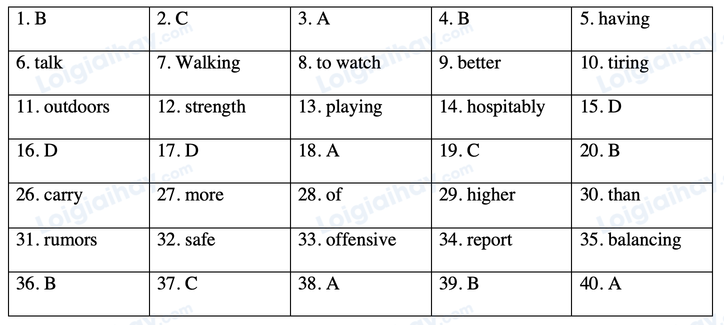 Giải thích: Vị trí còn trống cần điền một danh động từ.