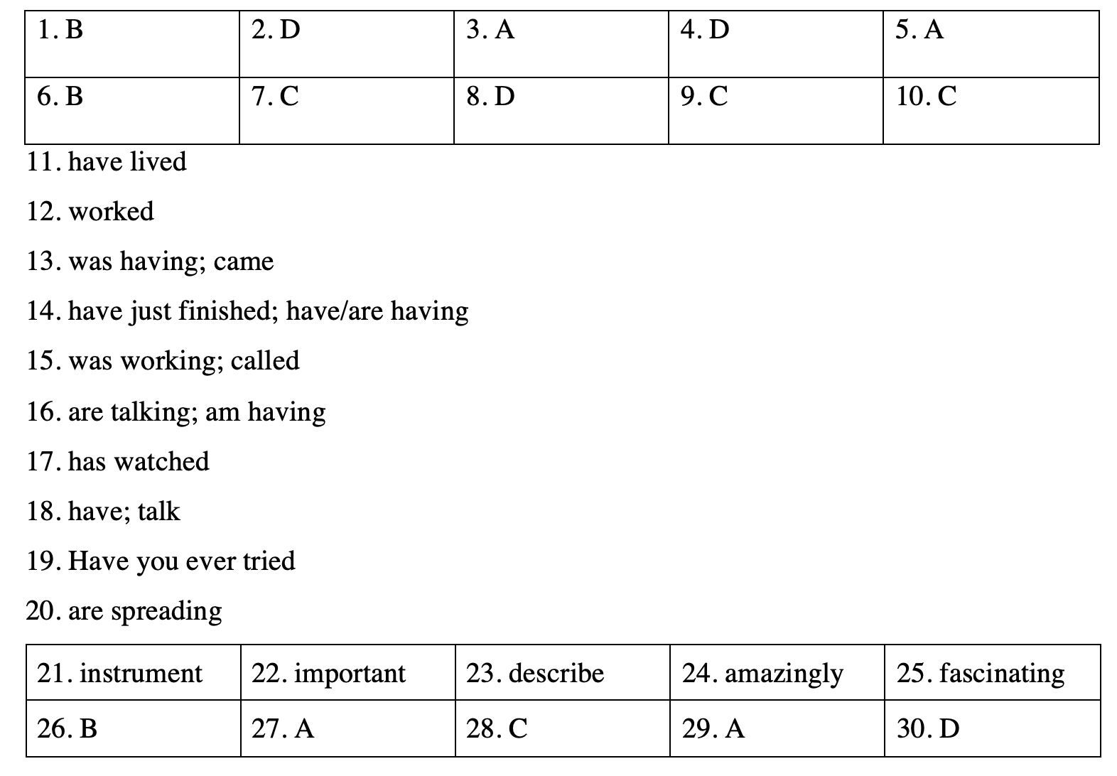 11. I ______ (live) in this city for five years.