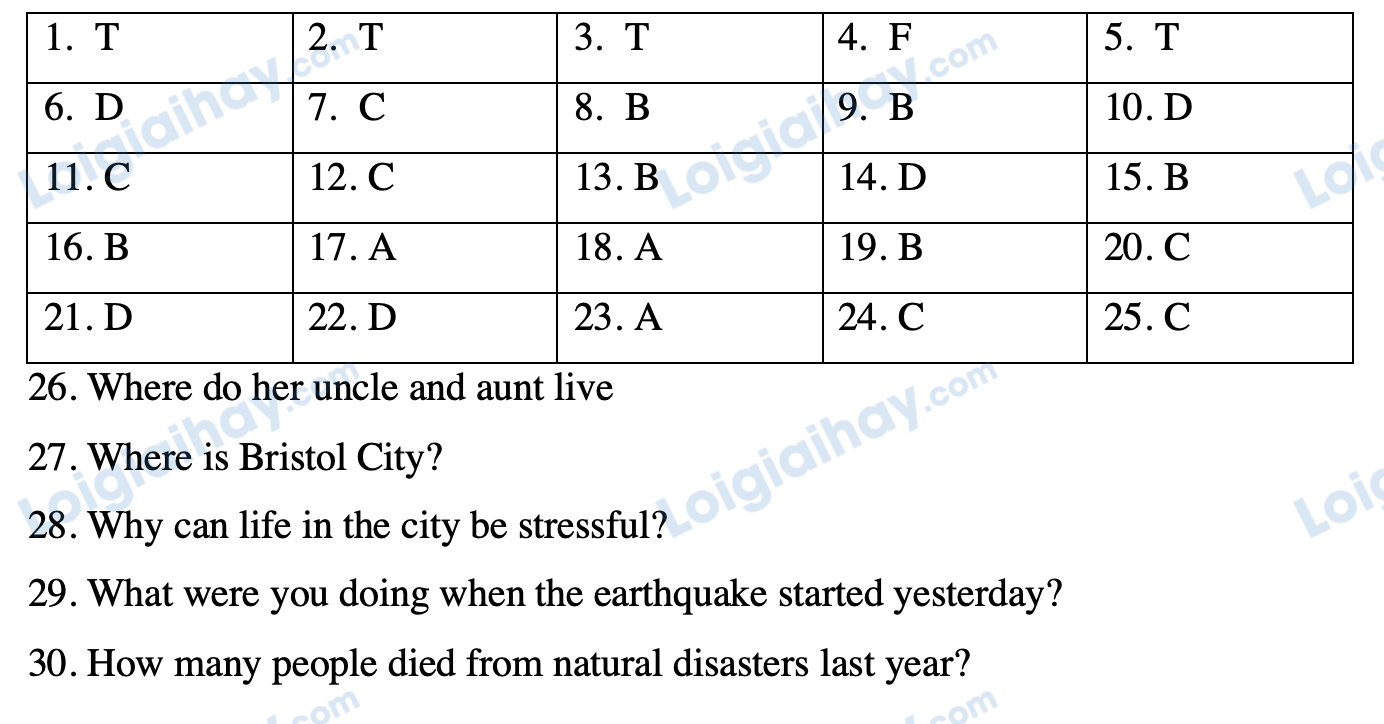 Listen to the news about an earthquake. Write T (TRUE) or F (FALSE). Choose the word choose the word whose underlined part is pronounced differently from the others. Choose the word which has a different stress pattern from the others. Choose the correct answers.Give the correct forms of the words in brackets. Read a text about a typhoon. Choose the correct answers. Make questions for the underlined words.