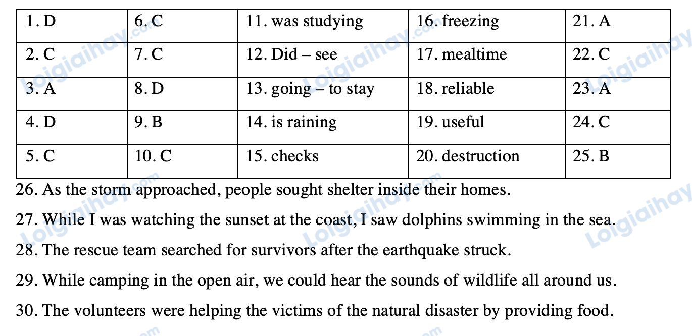Đáp án: While I was watching the sunset at the coast, I saw dolphins swimming in the sea.