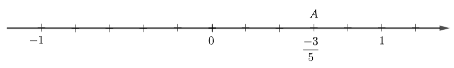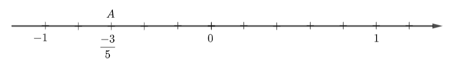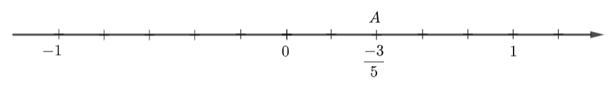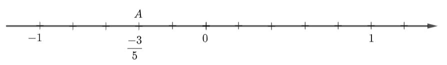 – Đi theo chiều âm của trục số, bắt đầu từ điểm 0, ta lấy 3 đơn vị mới đến điểm A. Điểm A biểu diễn số hữu tỉ \(\dfrac{{ – 3}}{5}\).