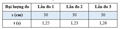 Câu 13: Để đo tốc độ của vật sau va chạm trong phòng thí nghiệm bằng đồng hồ hiện số và cổng quang điện, một bạn học sinh tiến hành đo 3 lần thu được kết quả lần lượt như sau: