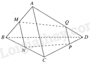 Ba mặt phẳng (ABC), (ACD) và (MNQ) lần lượt cắt nhau theo các giao tuyến AC, MN và PQ.
