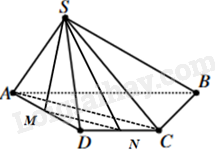 Mà \(AD \subset mp\left( {SAD} \right),CB \subset mp\left( {SCB} \right)\) và S thuộc cả hai mặt phẳng (SAD) và (SCB) nên giao tuyến d của hai mặt phẳng (SAD) và (SCB) là một đường thẳng song song đi qua S và song song với AD, CB.