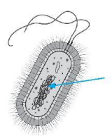 Mũi tên đang chỉ vào vùng nhân của tế bào vi khuẩn.
