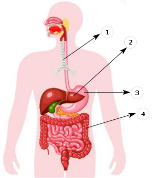 (1) – khí quản (2) – gan (3) – dạ dày (4) – ruột già.