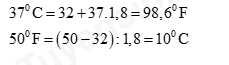 Câu 10: Đổi các đơn vị đo nhiệt độ sau?