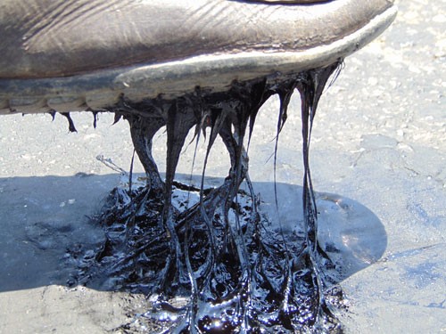 Khi nhiệt độ tăng cao nhựa đường từ thể rắn chuyển sang thể lỏng ⟹ quá trình nóng chảy.