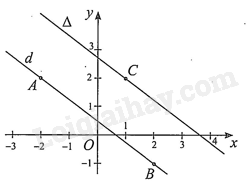 Ta có \(A( – 2;2),B(2; – 1),C(1;2)\). Vectơ chỉ phương của đường thẳng \(d\) là \(\vec u = \overrightarrow {AB} = (4; – 3)\) suy ra vectơ pháp tuyến của nó là \(\vec n = (3;4)\).
