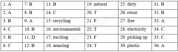 Our planet is in big trouble – animals are disappearing, the sea and the air are (25) dirty. But there are many different things we can do to protect the environment. First, recycle everything you can. Don’t throw away plastic bottles, glass jars, cardboard boxes or cans. We can (26) reuse them to store food, toys or grow flowers. Second, why not walk or cycle to school or work? It’s (27) free , good exercise and good for the environment. Third, don’t waste (28) electricity. Switch the lights off when you leave the room. And keep the city clean by (29) picking up litter off the streets. When you go shopping, bring your own bags instead of taking (30) plastic bags. Together we can make a big difference and help save the planet.