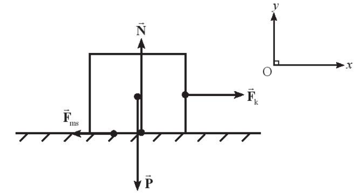 \(\overrightarrow {{F_k}}  + \overrightarrow {{F_{ms}}}  + \overrightarrow N  + \overrightarrow P  = m\overrightarrow a \)