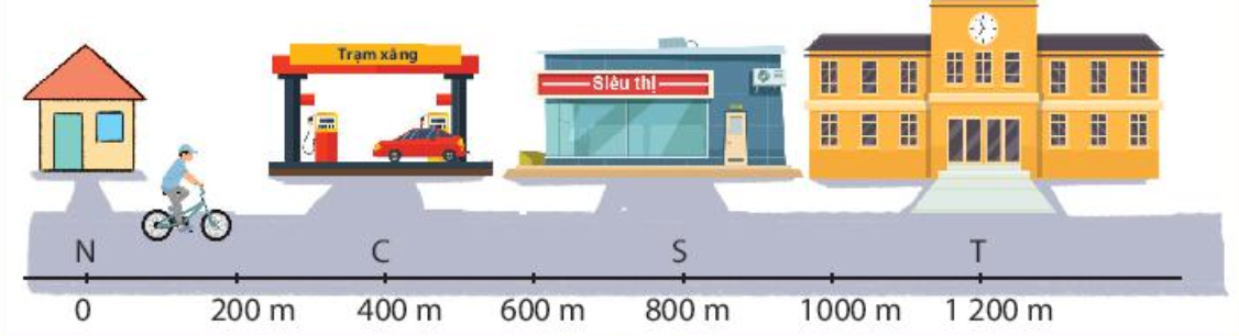Quãng đường bạn Nam đi từ trạm xăng đến siêu thị là: 800 – 400 = 400 (m)