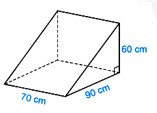 Diện tích đáy của hình lăng trụ là: \(S = \dfrac{1}{2}.90.60 = 2700\,\left( {c{m^2}} \right)\)