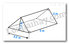 a) Diện tích đáy lăng trụ là: \(S\)đáy \( = \dfrac{1}{2}.3,2.1,2 = 1,92\,\left( {{m^2}} \right)\)