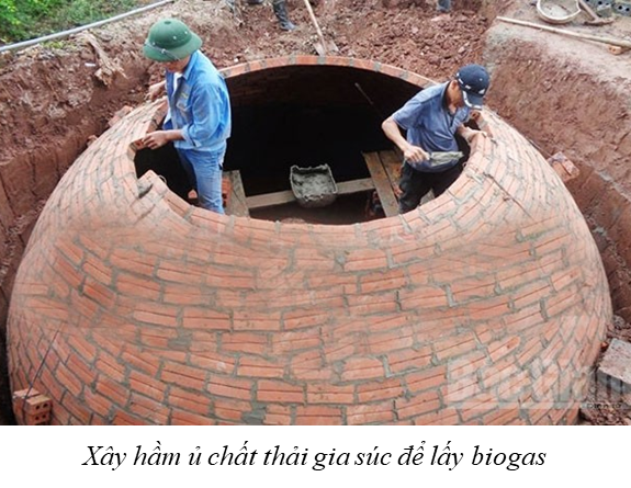Câu 24: Ở nhiều vùng nông thôn, người ta xây dựng hầm biogas để thu gom chất thải động vật. Chất thải được thu gom vào hầm sẽ phân hủy, theo thời gian tạo ra biogas. Biogas chủ yếu là khí methane, ngoài ra còn một lượng nhỏ các khí như ammonia, hydrogen sulfide, sulfur dioxide, … Biogas tạo ra sẽ được thu lại và dẫn lên để làm hầm ủ chất thải gia súc để lấy nhiên liệu khí phục vụ cho đun nấu hoặc biogas chạy máy phát điện.