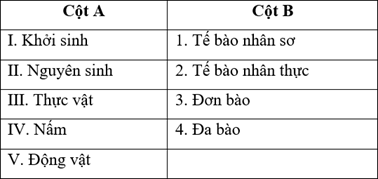 Giới nguyên sinh gồm những tế bào nhân thực, đơn bào hay đa bào: II – 2,3,4