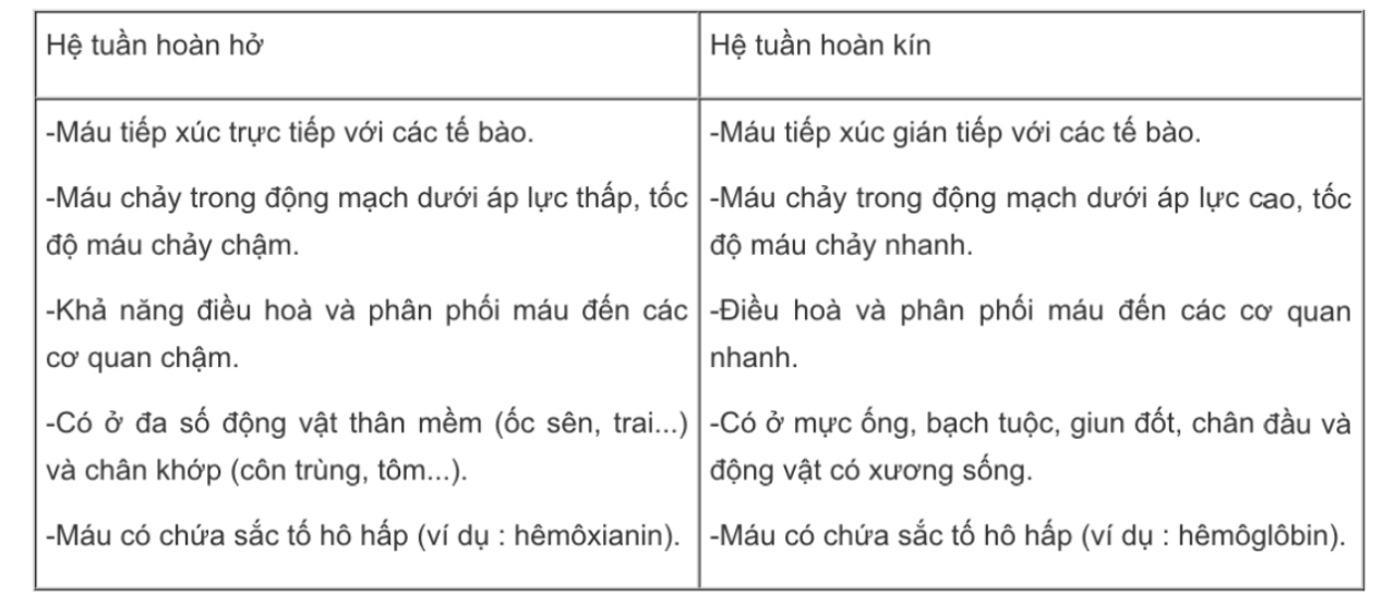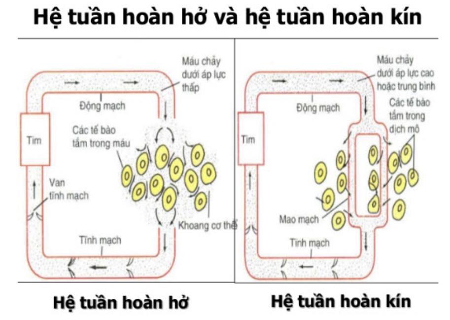 Phân biệt hệ tuần hoàn kín và hệ tuần hoàn hở: