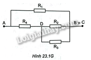 \(\begin{array}{l}{R_{23}} = \frac{{{R_2}{R_3}}}{{{R_2} + {R_3}}} = \frac{R}{2} = 0,5\Omega \\{R_{234}} = {R_4} + {R_{23}} = \frac{{3R}}{2} = 1,5\Omega \\{R_{AB}} = \frac{{{R_{234}}{R_1}}}{{{R_{234}} + {R_1}}} = \frac{{3R}}{5} = 0,6\Omega \end{array}\)