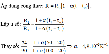 Một sợi dây đồng có điện trở 74 W ở 500 C, điện trở của sợi dây đó ở 1000 C là 90 W. Hệ số nhiệt điện trở của dây đồng là: