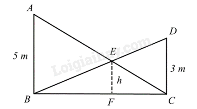 1. Có hai chiếc cột dựng thẳng đứng trên mặt đất với chiều cao lần lượt là 5 m và 3 m. Người ta nối hai sợi dây từ đỉnh cột này đến chân cột kia và hai sợi dây cắt nhau tại một điểm. Tính độ cao ℎ của điểm đó so với mặt đất.
