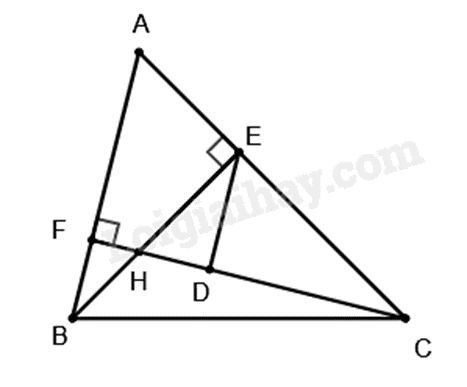 2. a) Chứng minh $\Delta ABE\backsim \Delta ACF$ theo trường hợp góc – góc.