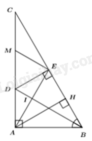 b) Kẻ \(AH \bot BC,{\mkern 1mu} \left( {H \in BC} \right)\), AH cắt BD tại I. Chứng minh rằng AH song song với DE và \(\Delta AID\) cân.