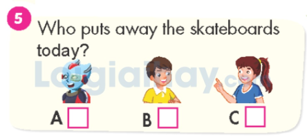 Listen and look. Write the correct answers.