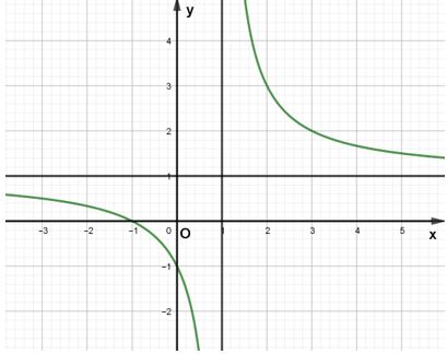Dựa vào đồ thị hàm số ta thấy hàm số này là hàm số bậc nhất trên bậc nhất, suy ra loại đáp án A và B.