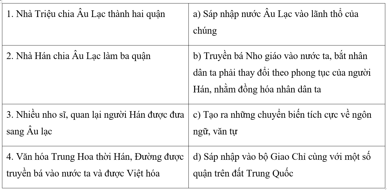 – Sau khi chiếm được Âu Lạc, nhà Triệu chia thành 2 quận, sáp nhập vào quốc gia Nam Việt.