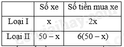 Tổng số tiền mua xe loại II là \(6\left( {50 – x} \right)\) (triệu đồng)