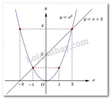 Vậy hai đồ thị hàm số \(y = x + 2\) và \(y = {x^2}\) cắt nhau tại 2 điểm có tọa độ là \(A\left( { – 1;1} \right)\) và \(B\left( {2;4} \right)\).