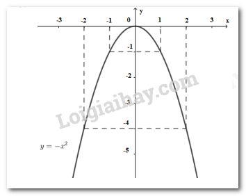 Vẽ đường cong đi qua các điểm có tọa độ \(\left( { – 2; – 4} \right),\left( { – 1; – 1} \right),\left( {0;0} \right),\left( {1; – 1} \right);,\left( {2; – 4} \right)\) ta được parabol \(\left( P \right):y = – {x^2}.\)
