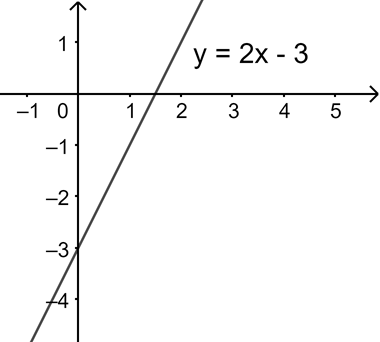 Đồ thị hàm số \(y = 2x – 3\) là đường thẳng, đi qua hai điểm (0;-3) và (1,5;0).