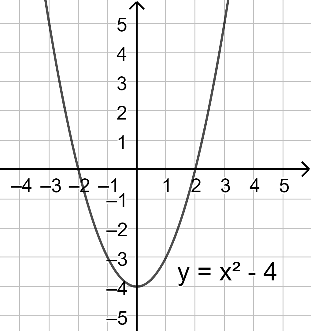 Quan sát đồ thị của hàm số \(y = {x^2} – 4\)