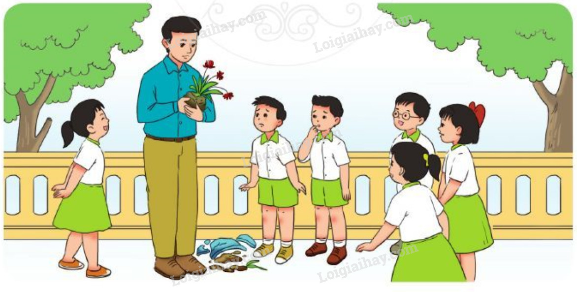 – Các em mang chiếc xô nhựa đến đây, trồng tạm cây hoa vào đó. Ngày mai, ta sẽ tìm cho nó một cái chậu mới. Được không nào?