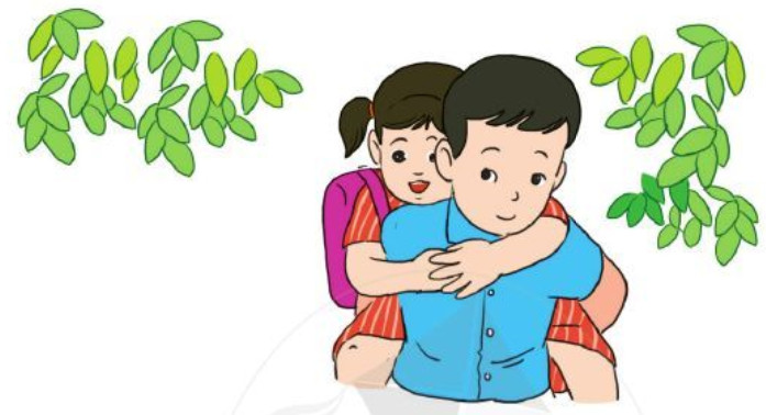 4. Hôm đó, Dũng cõng em gái về nhà. Vừa ôm cổ anh, Lan vừa hát líu lo. Dũng thấy vui hơn hẳn mọi ngày.