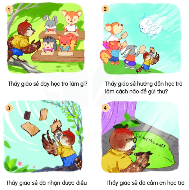 (2) Sau đó, sẻ hướng dẫn các con vật cách nhờ gió gửi thư. Các con vật cảm ơn sẻ và trở về nhà.