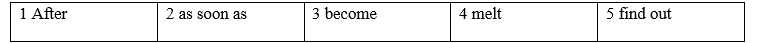 Giải thích: từ nối thời gian ‘after’ đứng đầu câu, ngay sau sẽ là mệnh đề thời gian, mệnh đề sau đó sẽ là mệnh đề chính -> melt