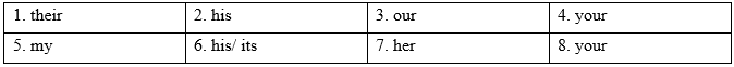 (Điền vào mỗi chỗ trống với tính từ sở hữu đúng.)