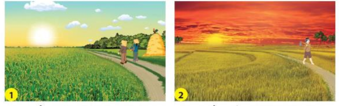 – Buổi sáng, mặt trời mọc ở phương đông; buổi chiều, mặt trời lặn ở phương Tây