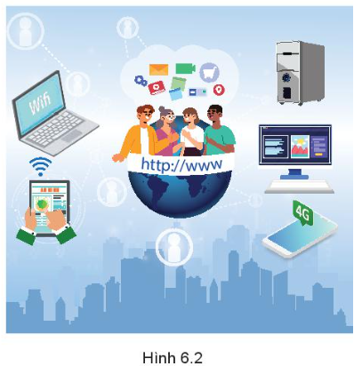 Từ gợi ý trong hình 6.2, nếu trao đổi thông tin trên mạng, em cần có những thiết bị: điện thoại, máy tính có kết nối wifi (mạng không dây), dữ liệu di động 4G, 5G…
