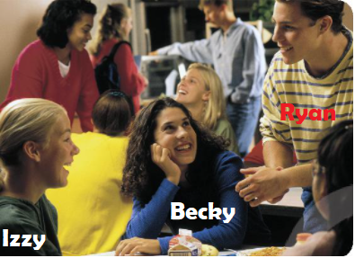 (Bạn trai đang đứng là Ryan. Hai bạn gái đang ngồi là Izzy và Becky.)