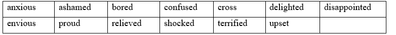 1. Complete the definitions with the adjectives below. 2. Read the speech texts. How is each speaker feeling? Choose the best adjective from exercise 1. 3. Complete the sentences with personality adjectives from below. There are six extra adjectives.