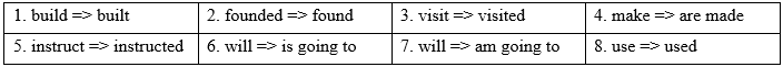 – Thì tương lai gần: S + is/ am/ are going to be + V inf (by O)