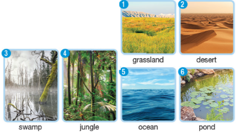 5. Which ecosystems in Exercise 1 exist/don’t exist in your country? Which one have you been to? Tell your partner.