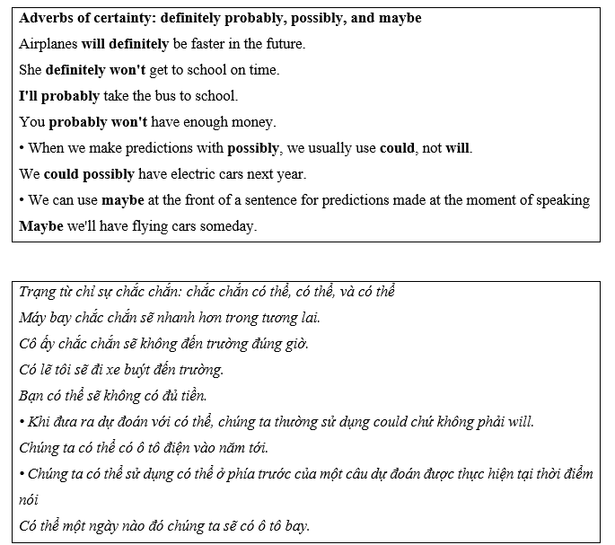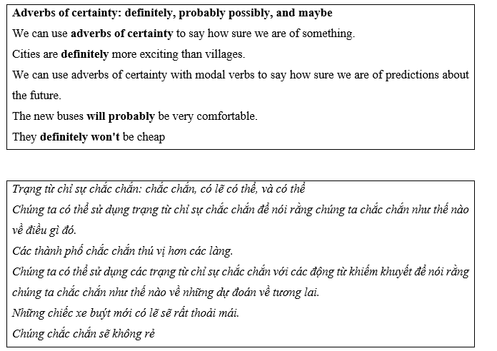 (đôi khi)                                              (chắc chắn)                             (hợp lý)
