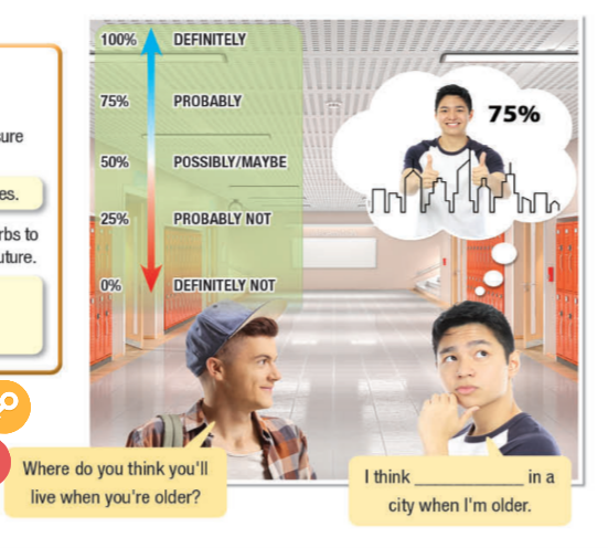 (Theo cặp: Hỏi và trả lời bằng cách sử dụng các chủ đề trong bảng cũng như các dự đoán và lý do của riêng bạn.)