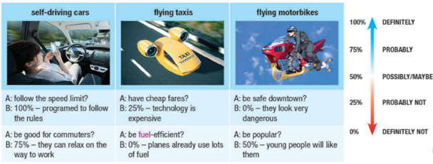 a. You are a city planner discussing self-driving taxis. In groups of three: Discuss each improvement, circle a number from 1 (impossible) to 5 (certain), and add up your scores.